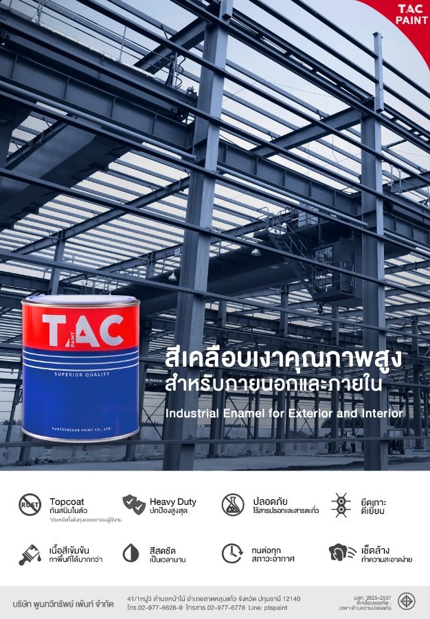 โรงงานผลิตและจัดจำหน่าย สีน้ำมันอุตสาหกรรมและเคมีภัณฑ์แบรนด์ไทย ที่ต้องการสร้างสรรค์ผลงานของผู้ใช้ ด้วยสินค้ามีคุณภาพ ทั้งกลุ่มงานโยธา งานเหล็ก กลุ่มเครื่องจักรกลการเกษตร กลุ่มเครื่องจักรและกลุ่มปั๊มน้ำและท่อ ภายใต้แบรนด์ TAC ที่ผ่านการรับรอง มาตรฐาน มอก. และISO ด้วยราคาที่จับต้องได้